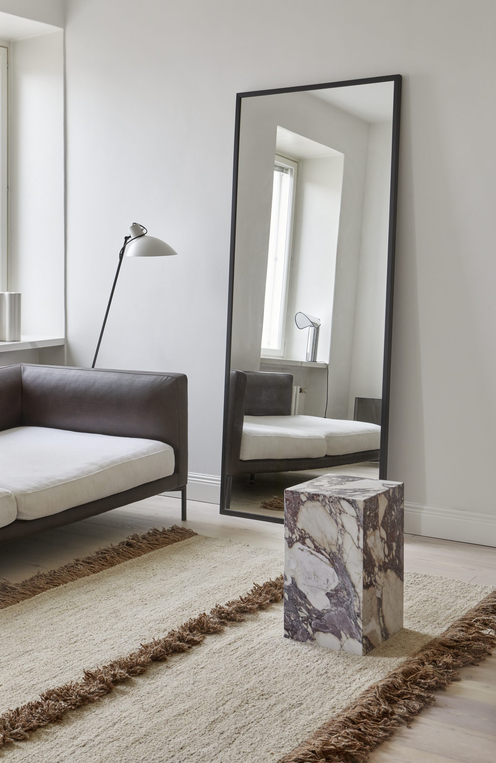 The Nurja rug by Sera Helsinki is handwoven in Ethiopia from natural, untreated, and undyed sheep wool, creating a unique and luxurious look with subtle color variations. Its standout feature is a 2.5 cm tufted fringe running along the long sides and the center, adding an ethnic and elegant touch. Durable and eco-friendly, the rug can be ordered in custom sizes, with a 2–3 month production time.